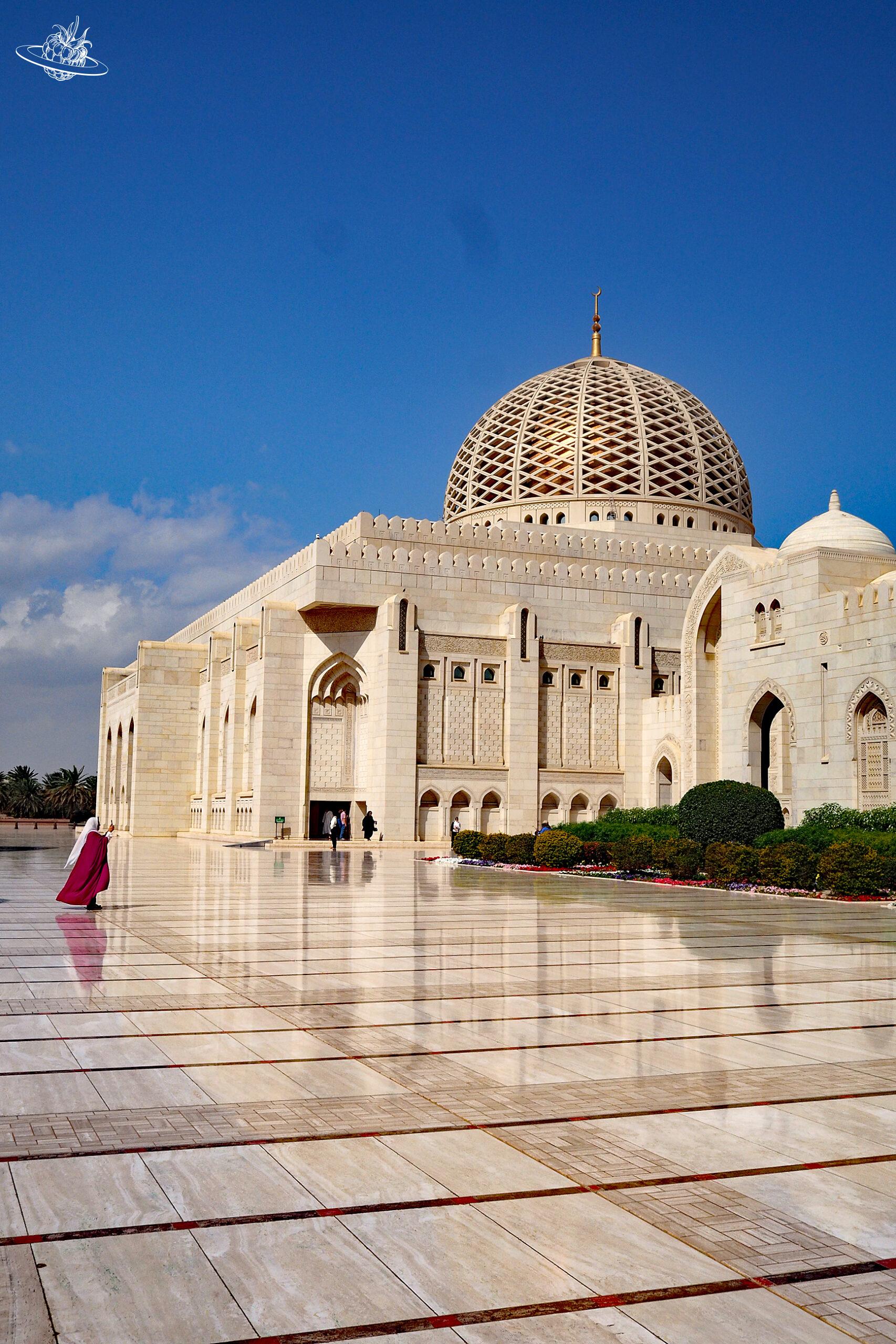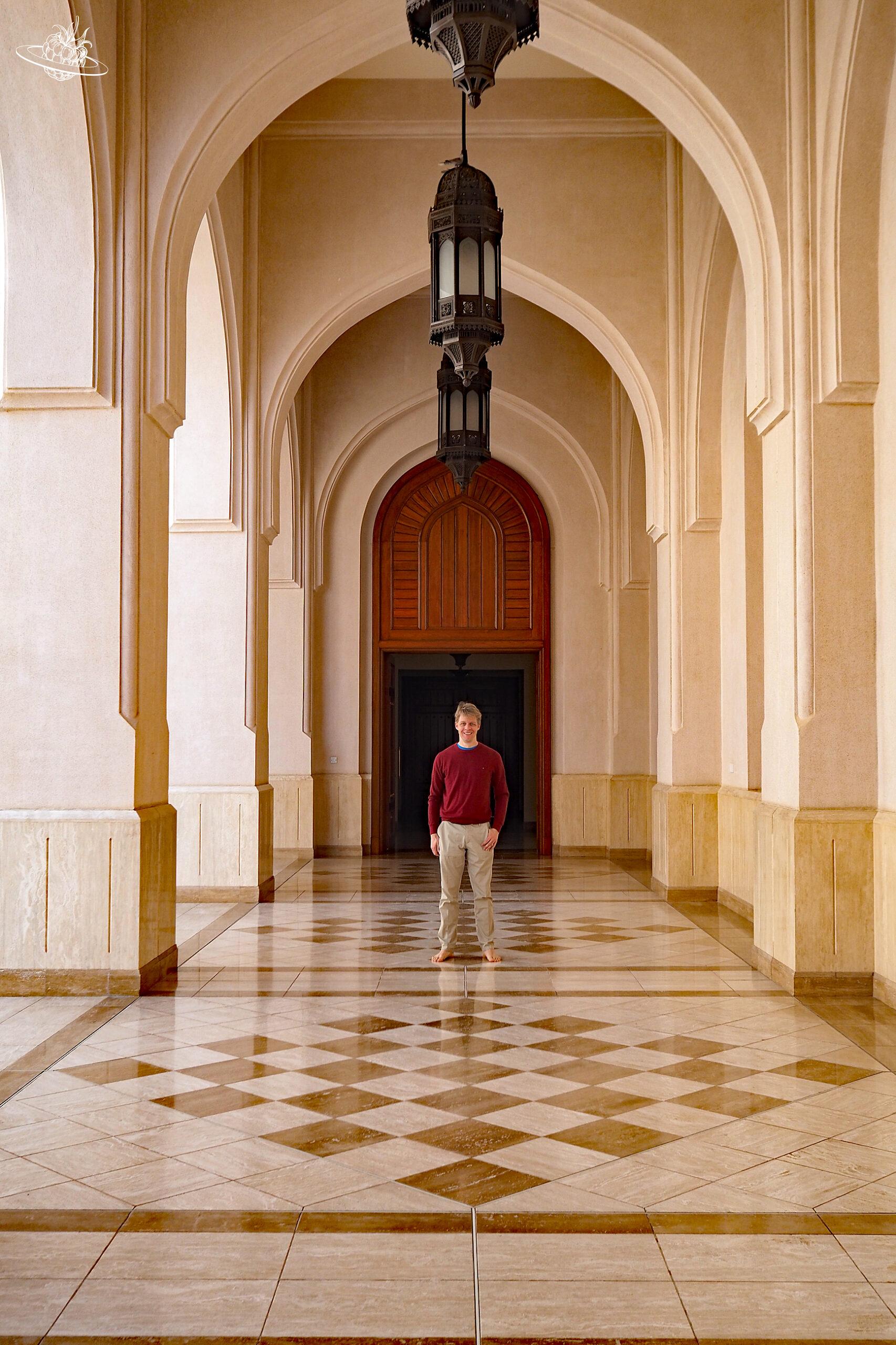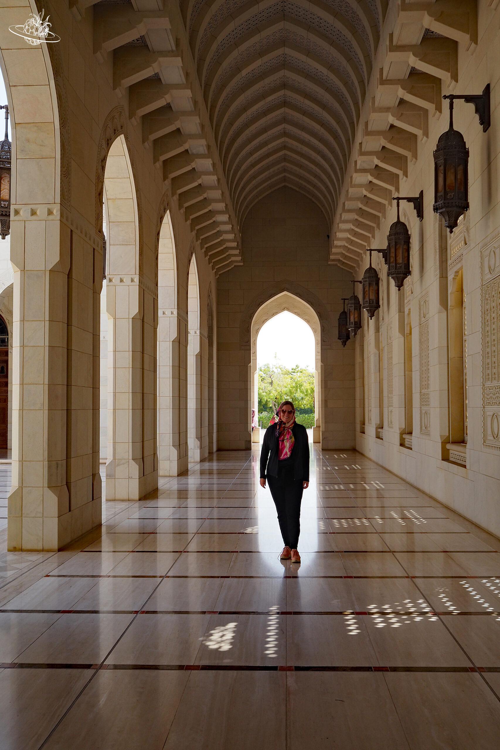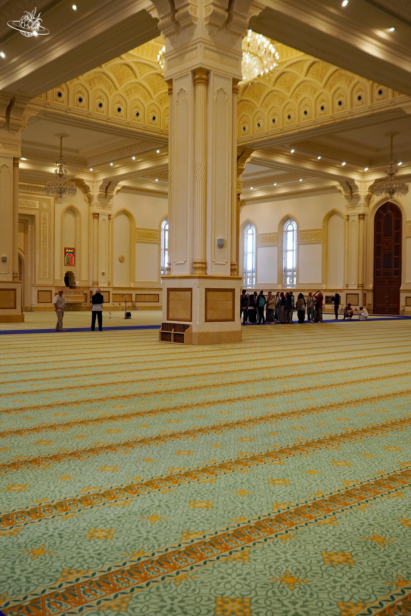 Die Große Sultan-Qabus-Moschee ist wirklich beeindruckend und unbedingt einen Besuch wert. Die eigentliche Moschee liegt mitten in einem prächtigen Park voller Pflanzen, Blumen, Seen und Springbrunnen. Über verschiedene Bogengängen gelangt man zur grossen Gebetshalle. In dieser verschlägt es einem fast die Sprache ab der Grösse und Oppulenz.