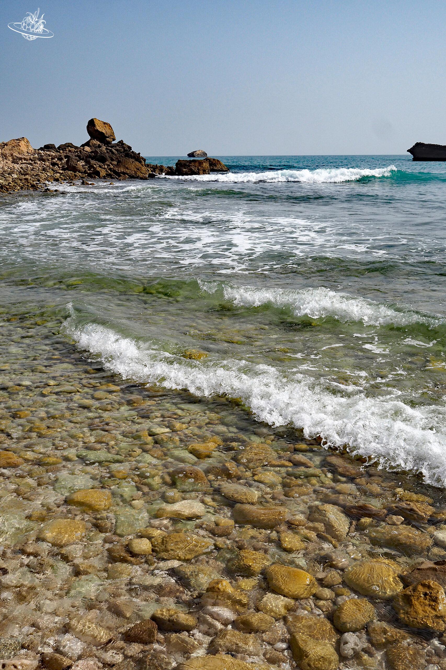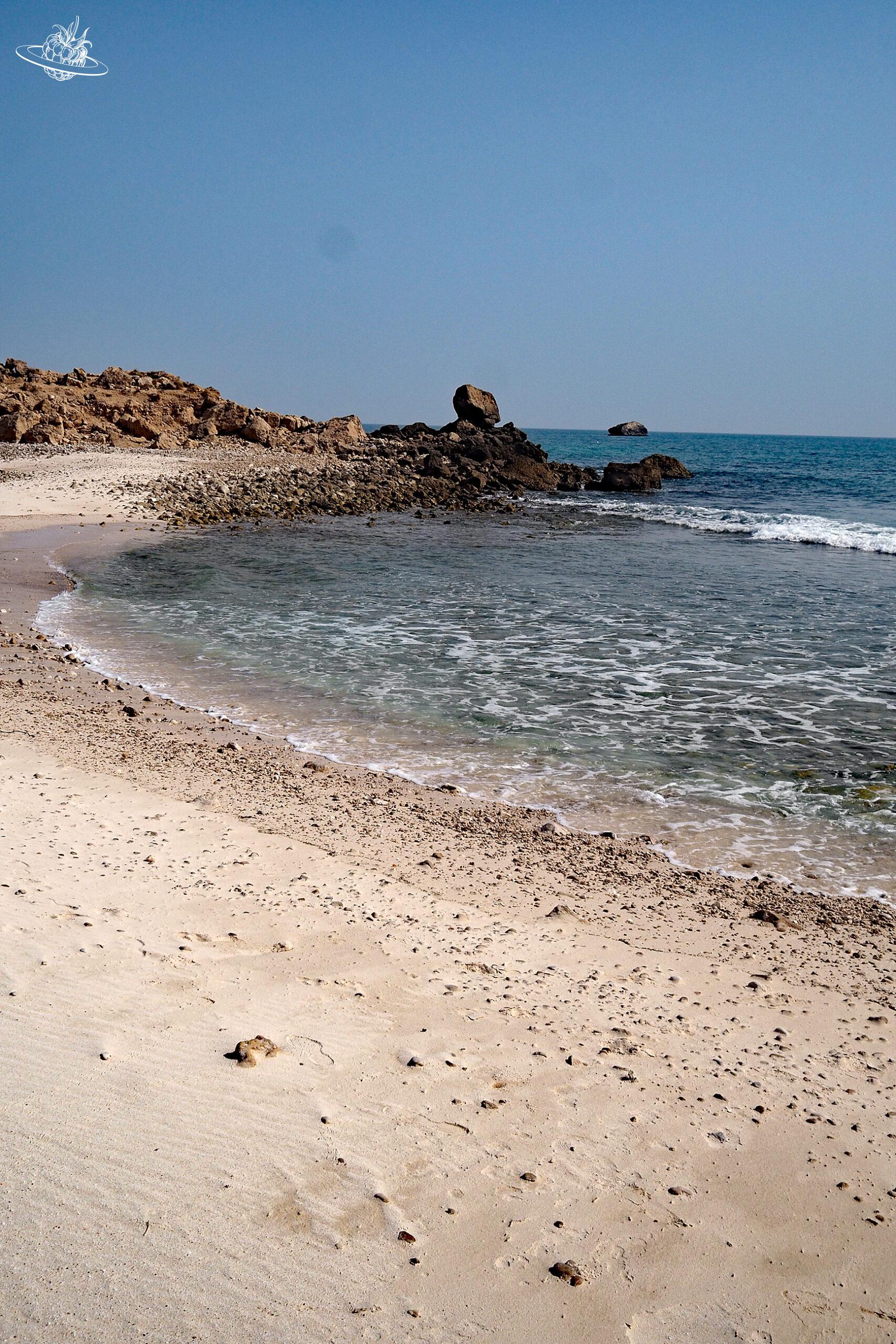 Er war dann auch gleich so freundlich uns den Weg zu unserem Ziel, den Fazayat Beach zu weisen. Von der Hauptstrasse geht es einen steilen, unbefestigten Weg runter ans Meer. Die Küste besteht aus vielen kleinen Buchten mit klarem Wasser und feinem Sand. Dahinter ragen die Felsen steil empor, ein wahrlich beeindruckender Anblick. Und wir waren praktisch alleine hier und konnten den Ort richtig geniessen.